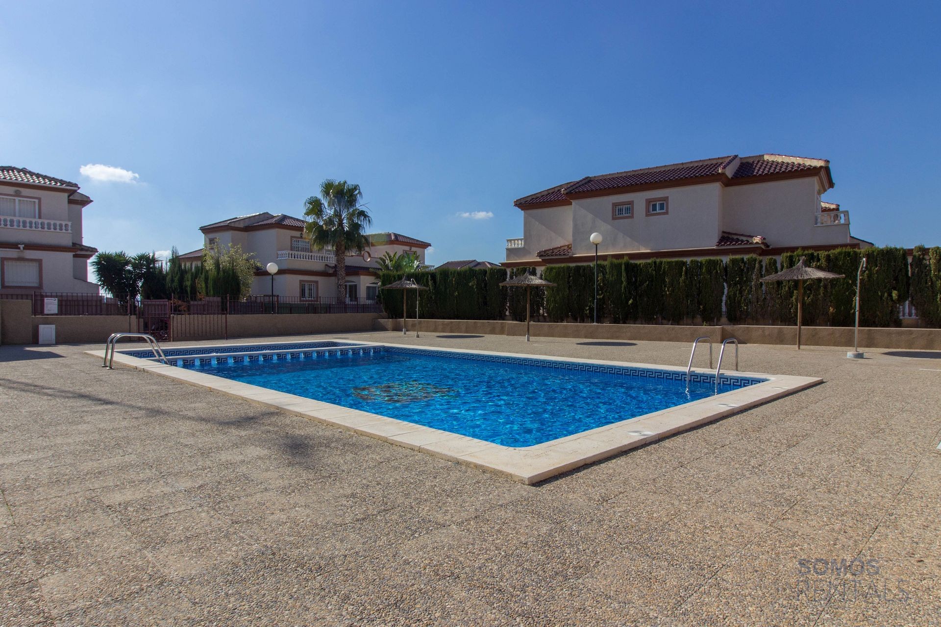 The communal swimming pool is open all year round and is located adjacent to the property. There is a large swimming pool, a childrens splash pool, showers and a spacious terrace with parasols.
